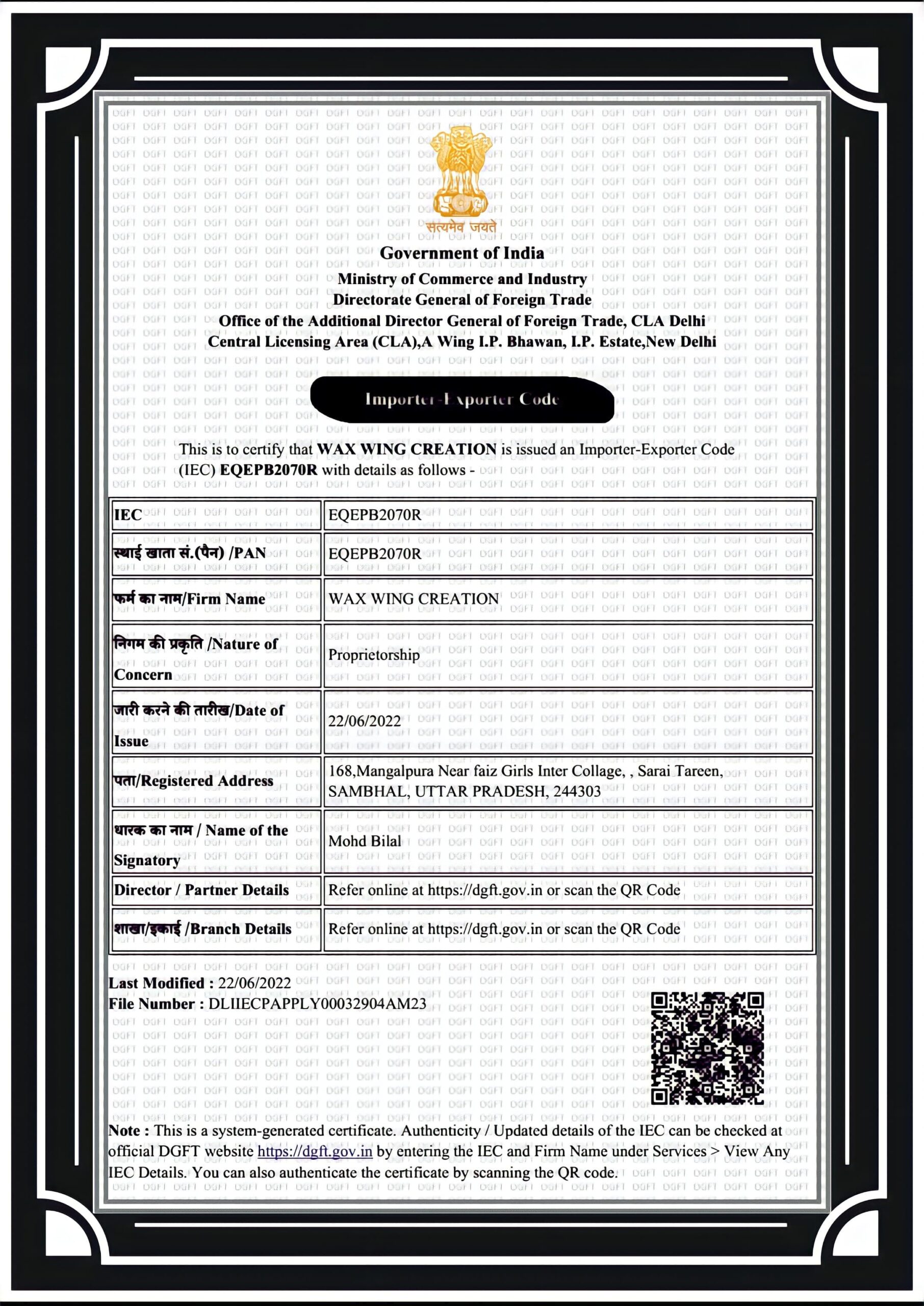 We are a certified firm with GST registration, MSME certification, and IEC license, ensuring compliance and trust in every export.